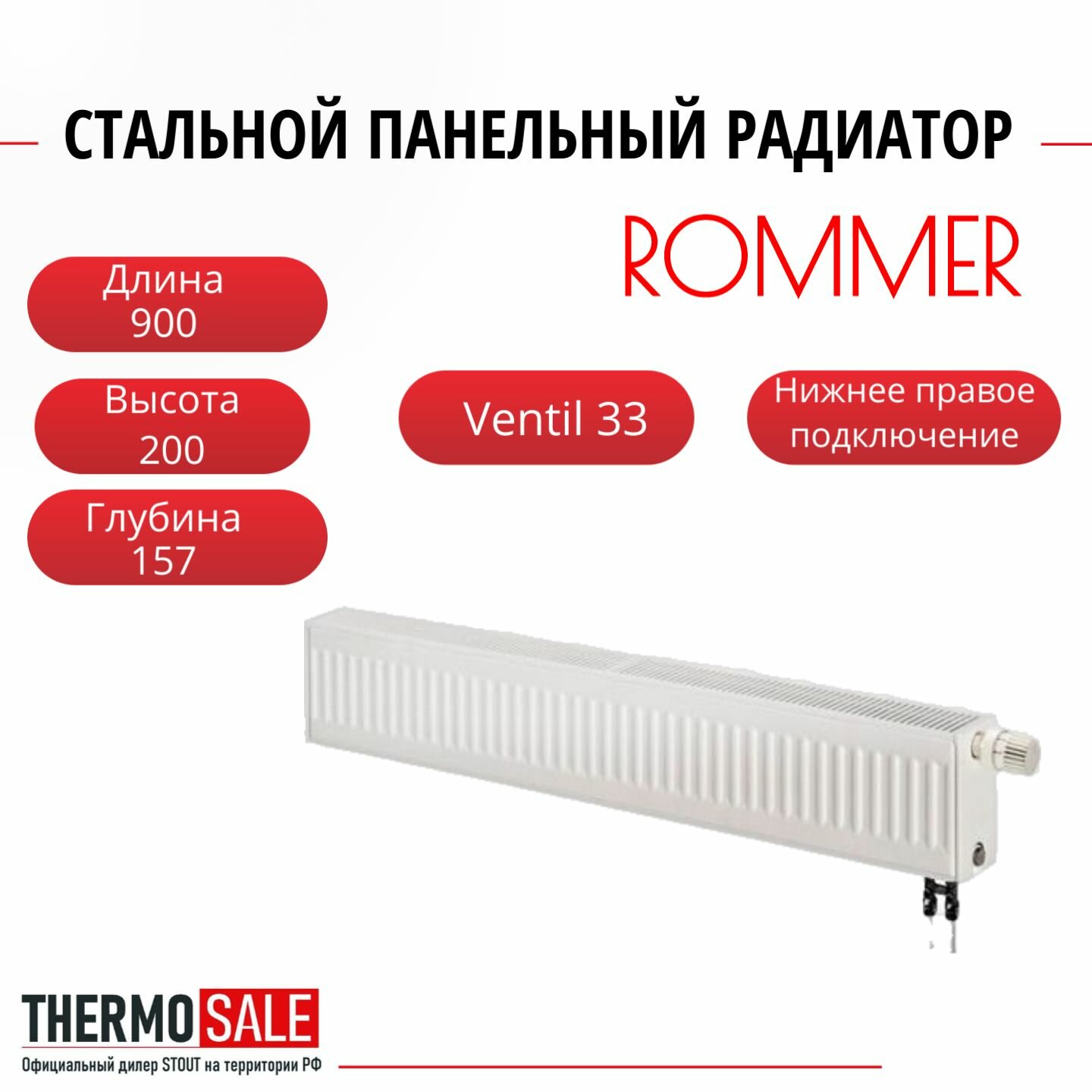 Купить Радиатор стальной панельный ROMMER Ventil Тип 33, 200/900, нижнее правое подключение, RRS-2020-332090