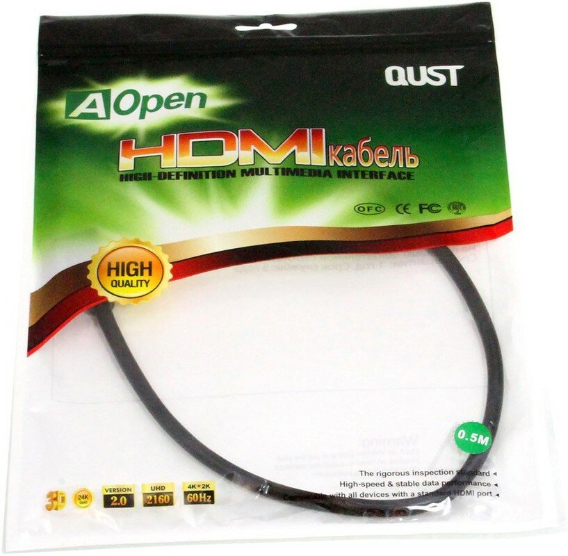 Кабель HDMI 19M/M ver 2.0, 0.5М Aopen/Qust