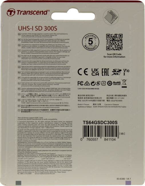 Ниже Вы можете прочитать отзывы на Флеш карта SDHC 64Gb Class10 Transcend TS64GSDC300S 300S w/o adapter, ознакомится с подробными характеристиками, посмотреть интересные обзоры и фотографии на Флеш карта SDHC 64Gb Class10 Transcend TS64GSDC300S 300S w/o adapter.