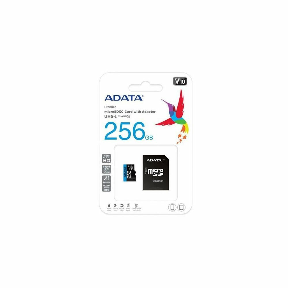 Карта памяти microSDXC UHS-I U1 A-Data Premier Pro 256 ГБ, 100 МБ/с, 10X, Class 10, AUSDX256GUICL10A1-RA1, 1 шт., переходник SD