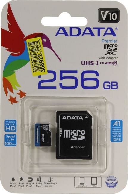 Карта памяти ADATA MicroSDHC 256GB (AUSDX256GUICL10A1-RA1)