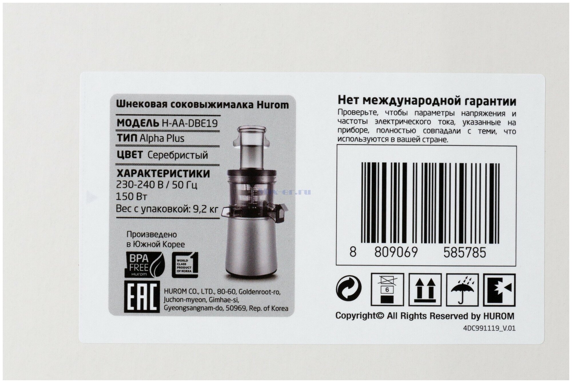 Соковыжималка Hurom Alpha Plus H-AA-DBE19 серебристый интересное: