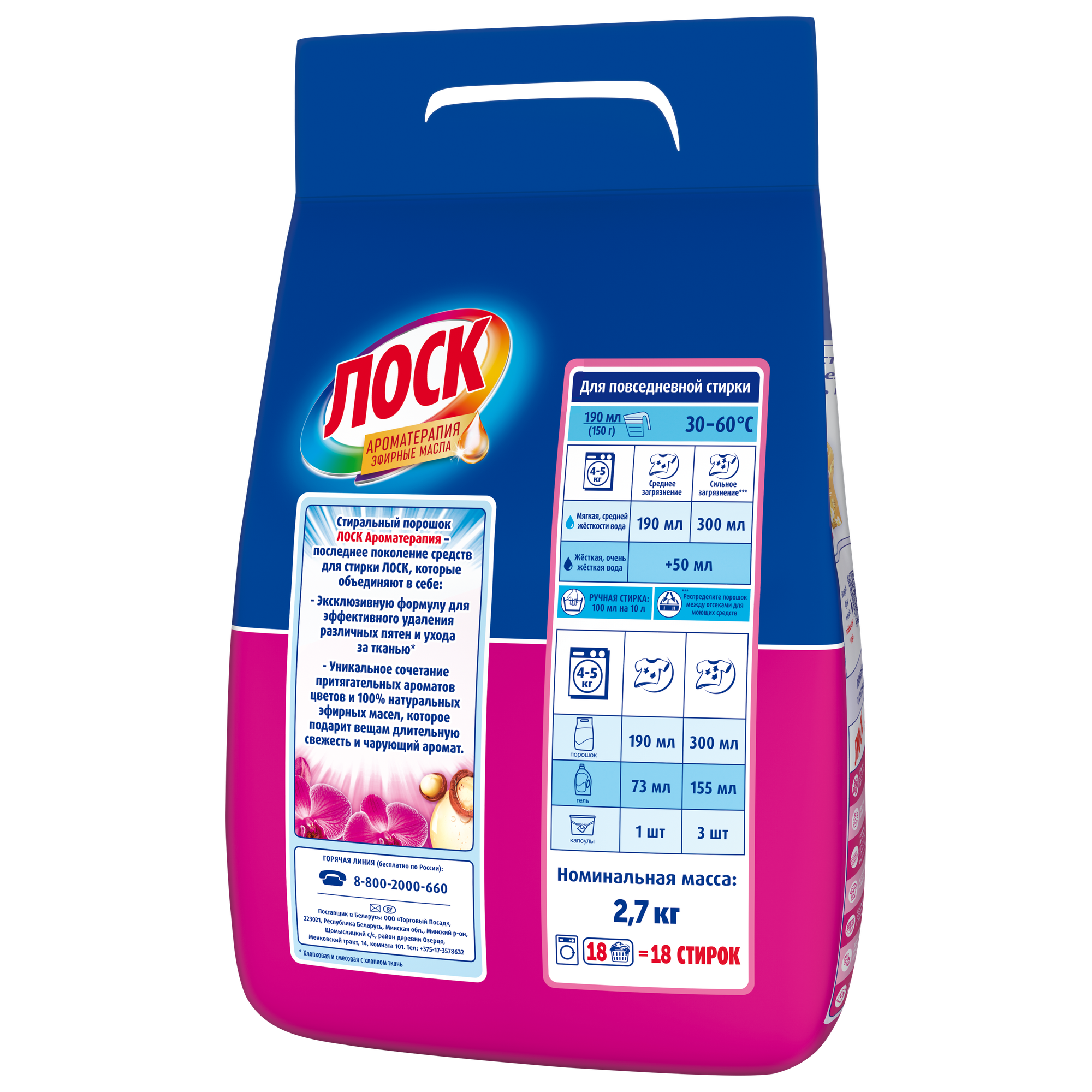 Стиральный порошок Losk Арома, Орхидея и Масло Макадамии, автомат, 2,7кг