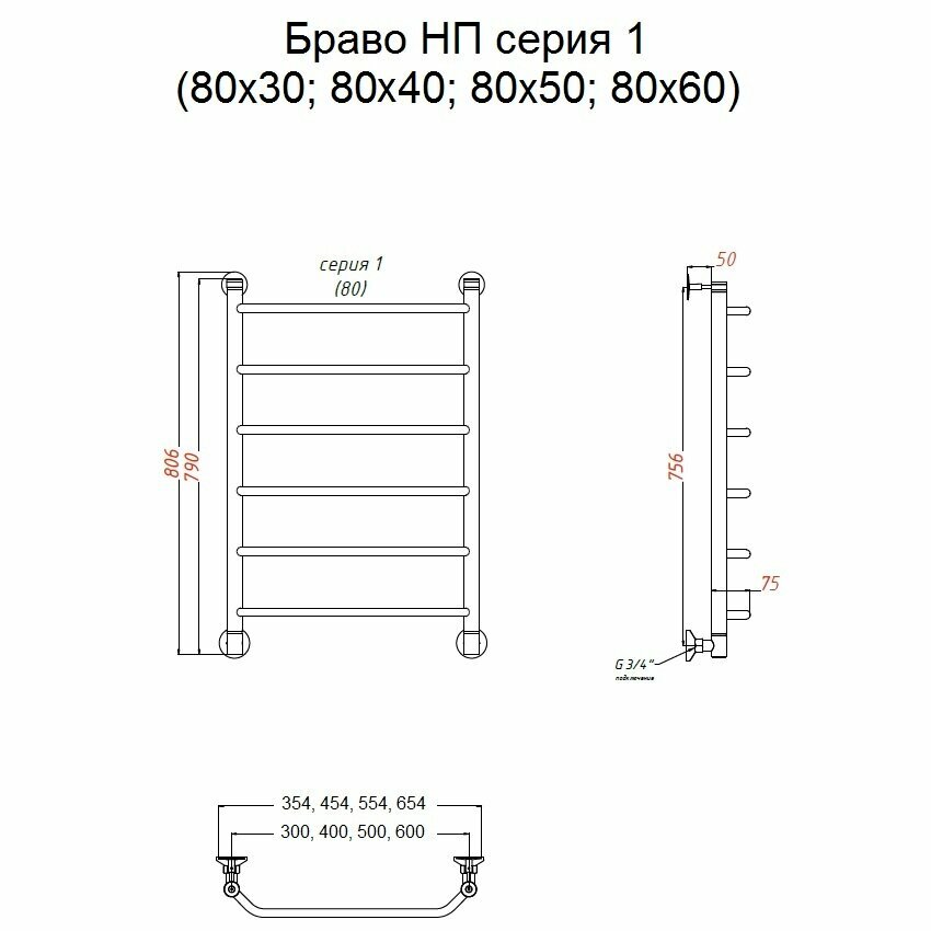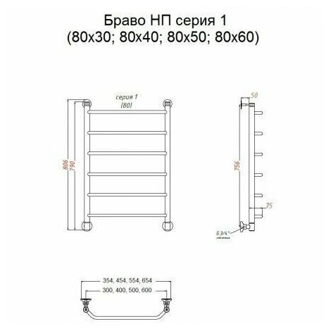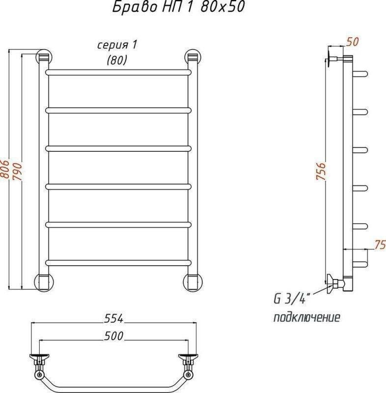 Полотенцесушитель Браво НП 1 80*50 (ЛЦ4)
