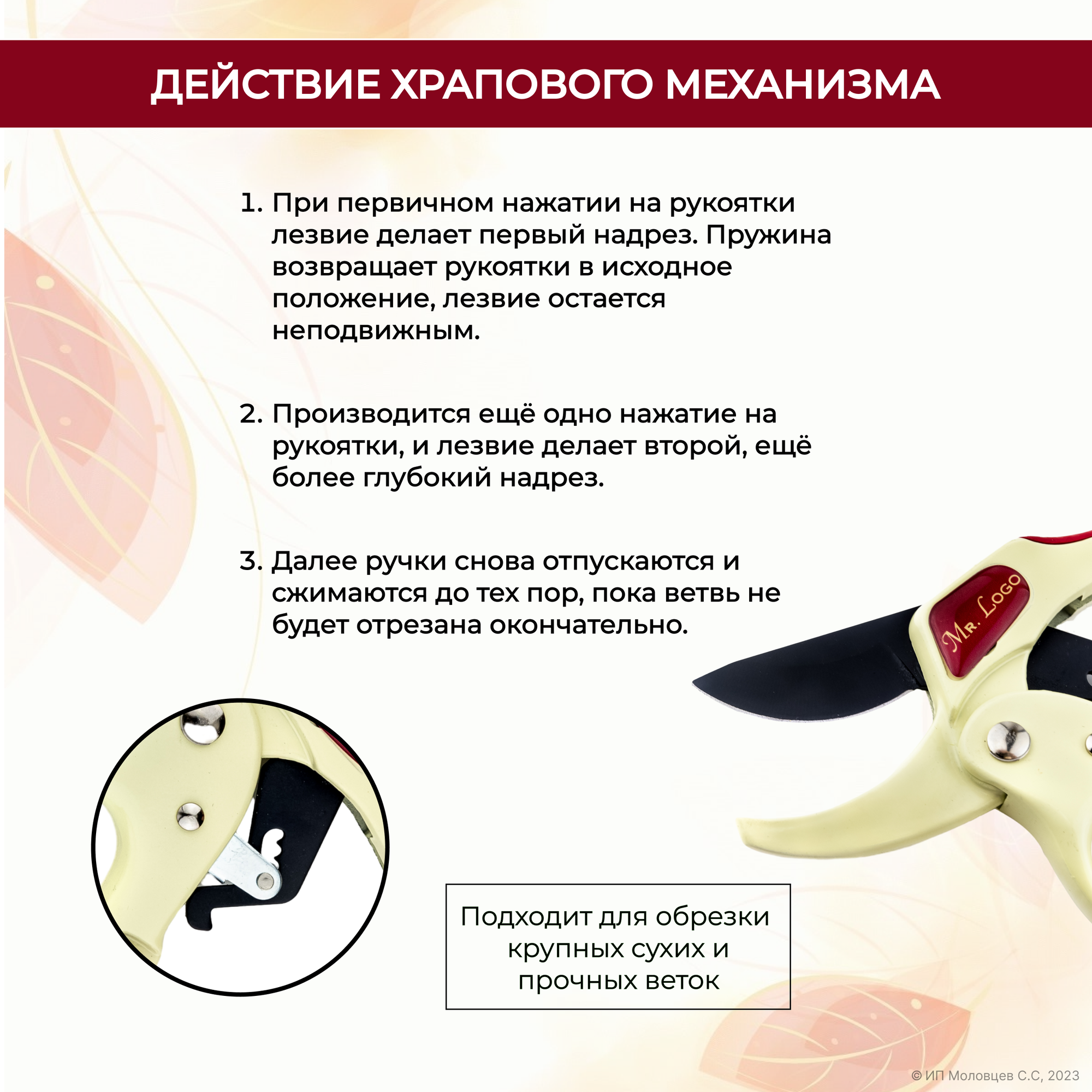 Секатор с храповым механизмом Mr.Logo арт. 46719 Лезвие - японская сталь SK5