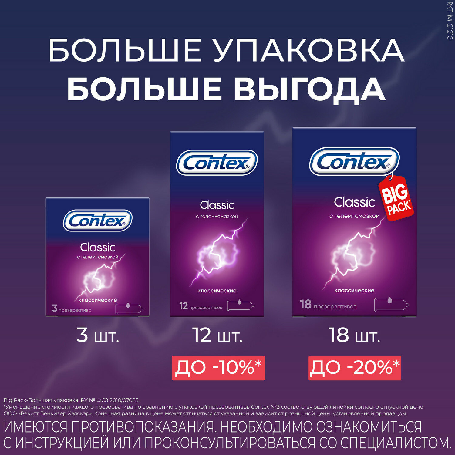 Contex Classic Презервативы классические с гелем-смазкой естественные ощущения, 18 шт