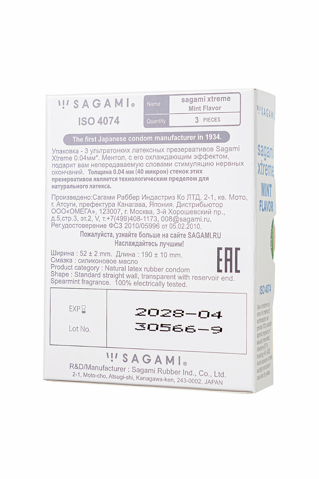 57522 Sagami Xtreme Mint, 10 шт. Презервативы с мятным ароматом и охлаждающим эффектом
