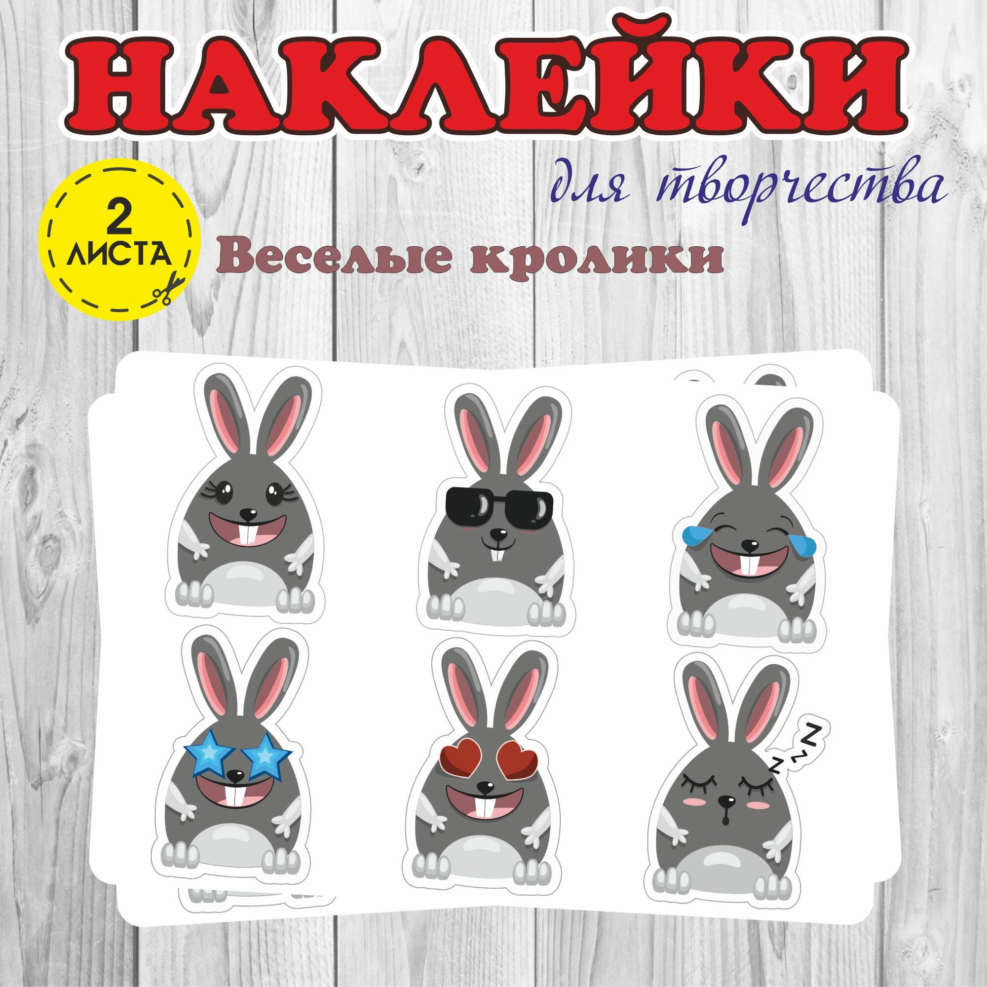 Набор наклеек RiForm "Веселые кролики", 2 листа 6 наклеек, 5см интересное: