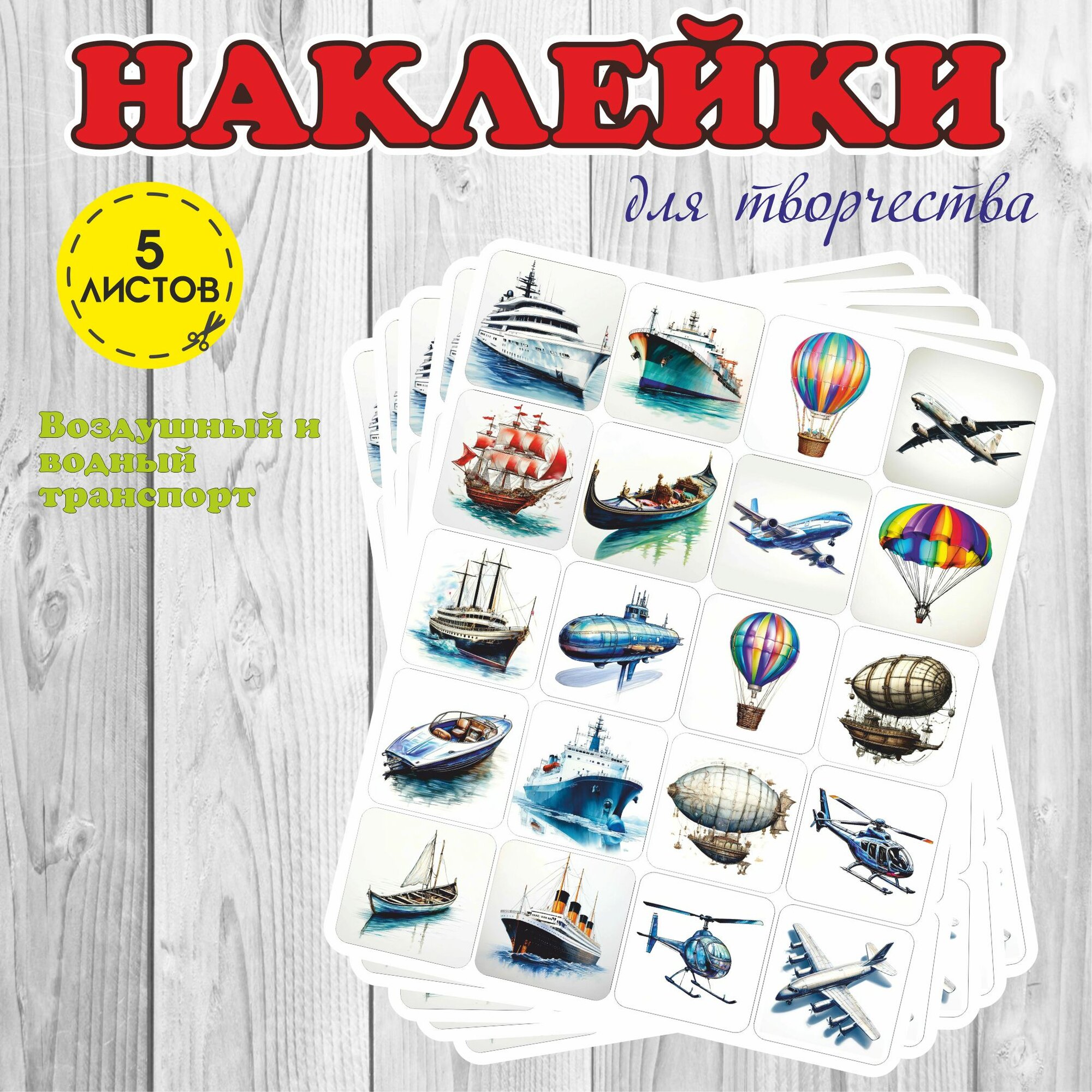 Набор наклеек RiForm "Воздушный и водный транспорт", 5 листов по 20 наклеек, 30мм интересное: