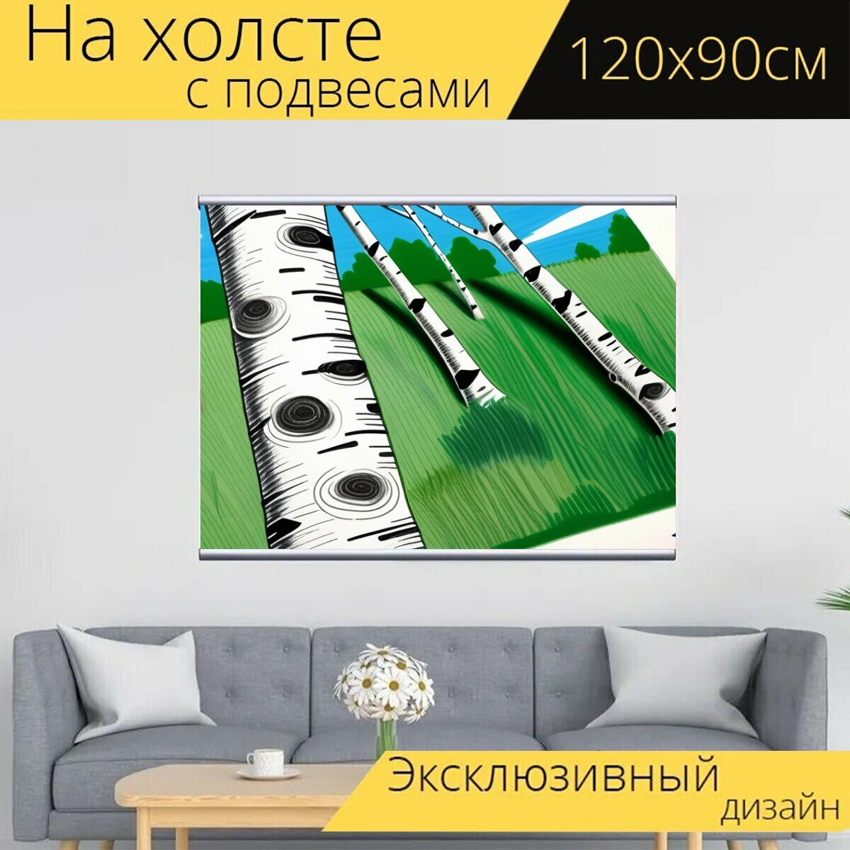 Картина на холсте "Рисуем пейзаж с березой красивый, " с подвесами 120х90 см. для интерьера на стену интересное: