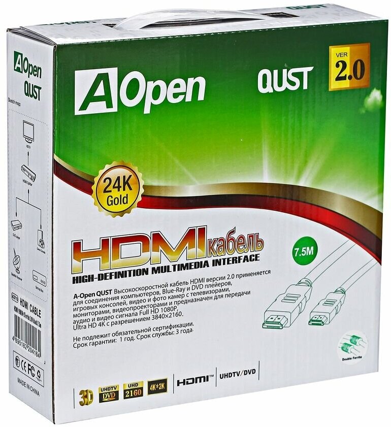 Кабель HDMI - HDMI, 7.5м, AOpen (ACG711D-7.5M)