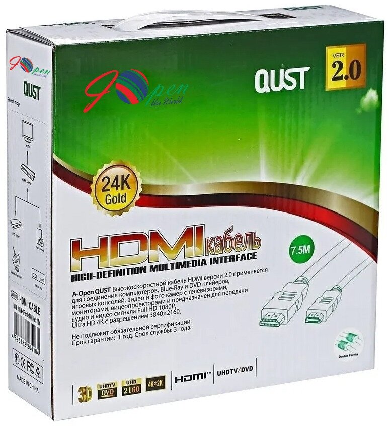 Ниже Вы можете прочитать отзывы на Кабель HDMI AOPEN/QUST 19M/M ver 2.0, 10М, 2 фильтра, белый (ACG711DW-10M), ознакомится с подробными характеристиками, посмотреть интересные обзоры и фотографии на Кабель HDMI AOPEN/QUST 19M/M ver 2.0, 10М, 2 фильтра, белый (ACG711DW-10M).