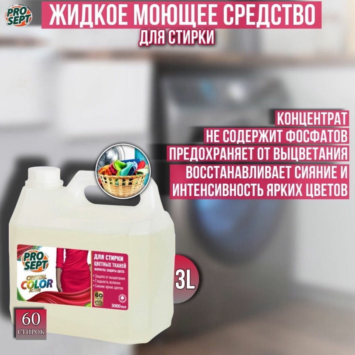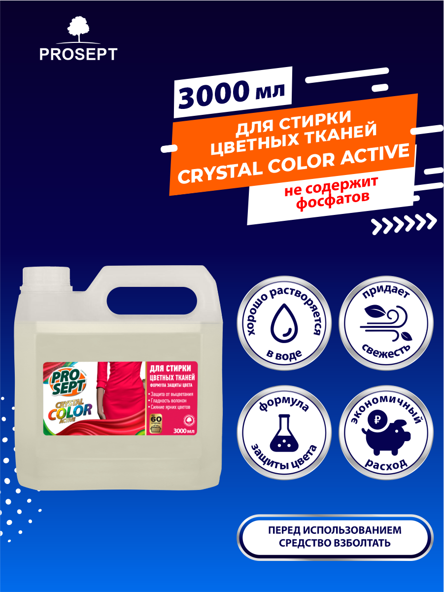 Жидкое моющее средство Prosept Crystal для стирки цветных тканей, 3л .