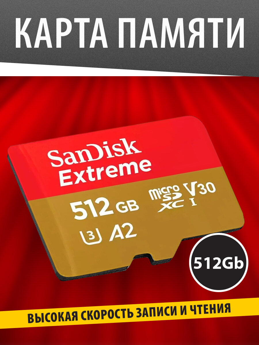Карта памяти 512Gb - SanDisk Extreme Micro Secure Digital XC Class 10 UHS-I A2 C10 V30 U3 SDSQXAV-512G-GN6MN