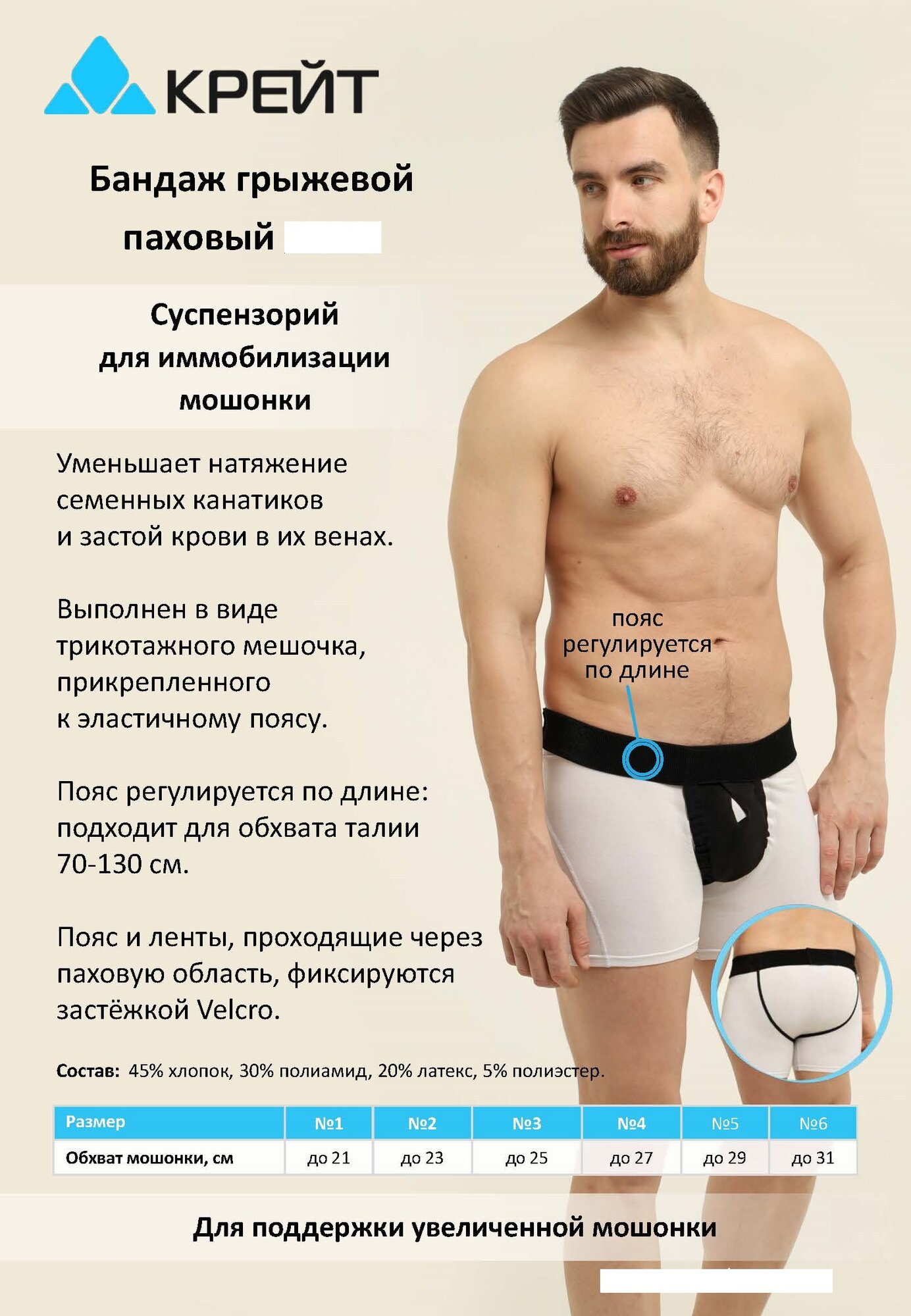 Бандаж грыжевой паховый, суспензорий, Крейт, №6, черный