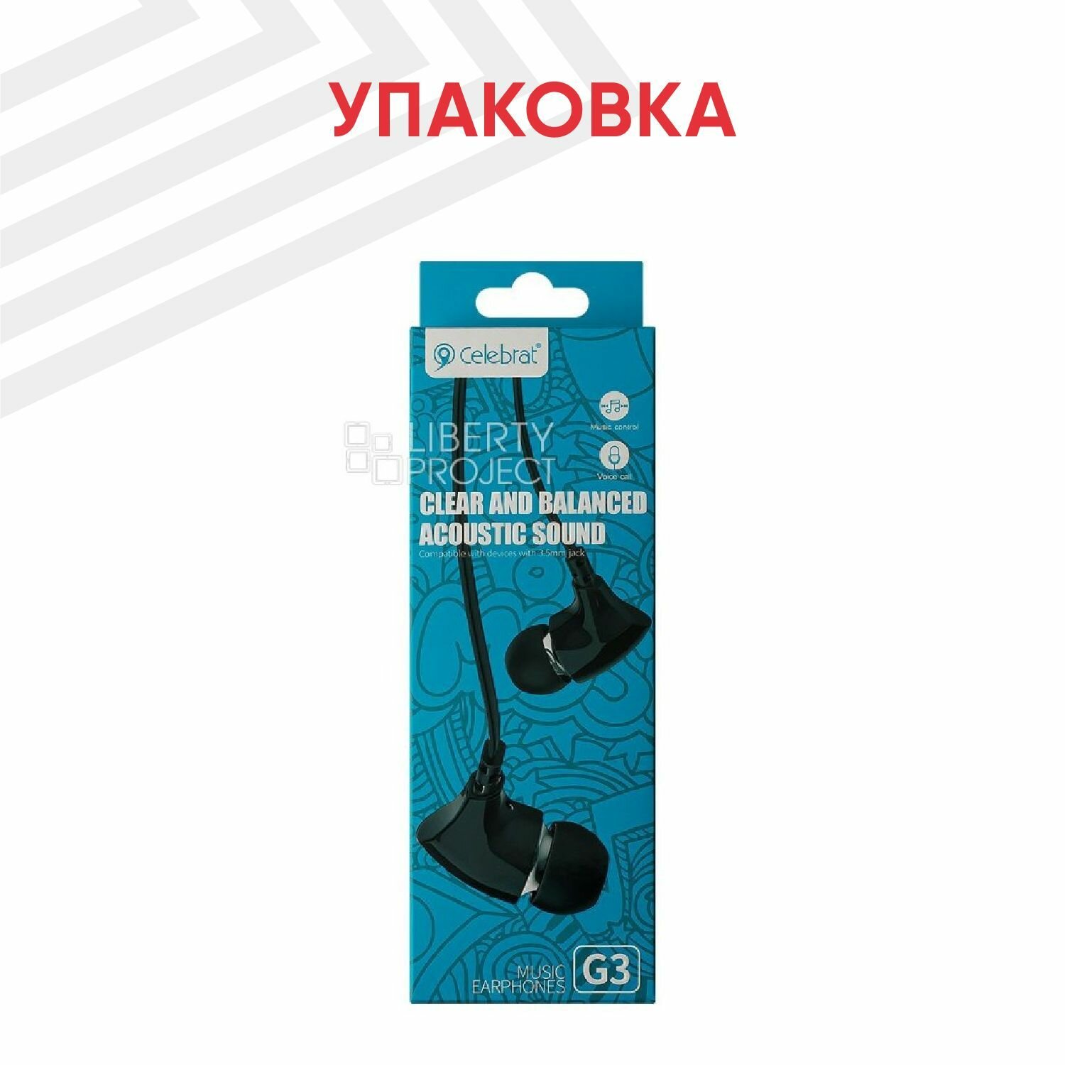 Наушники внутриканальные с микрофоном Celebrat G3 , черные 3.5mm Audio Pin, 1,2m