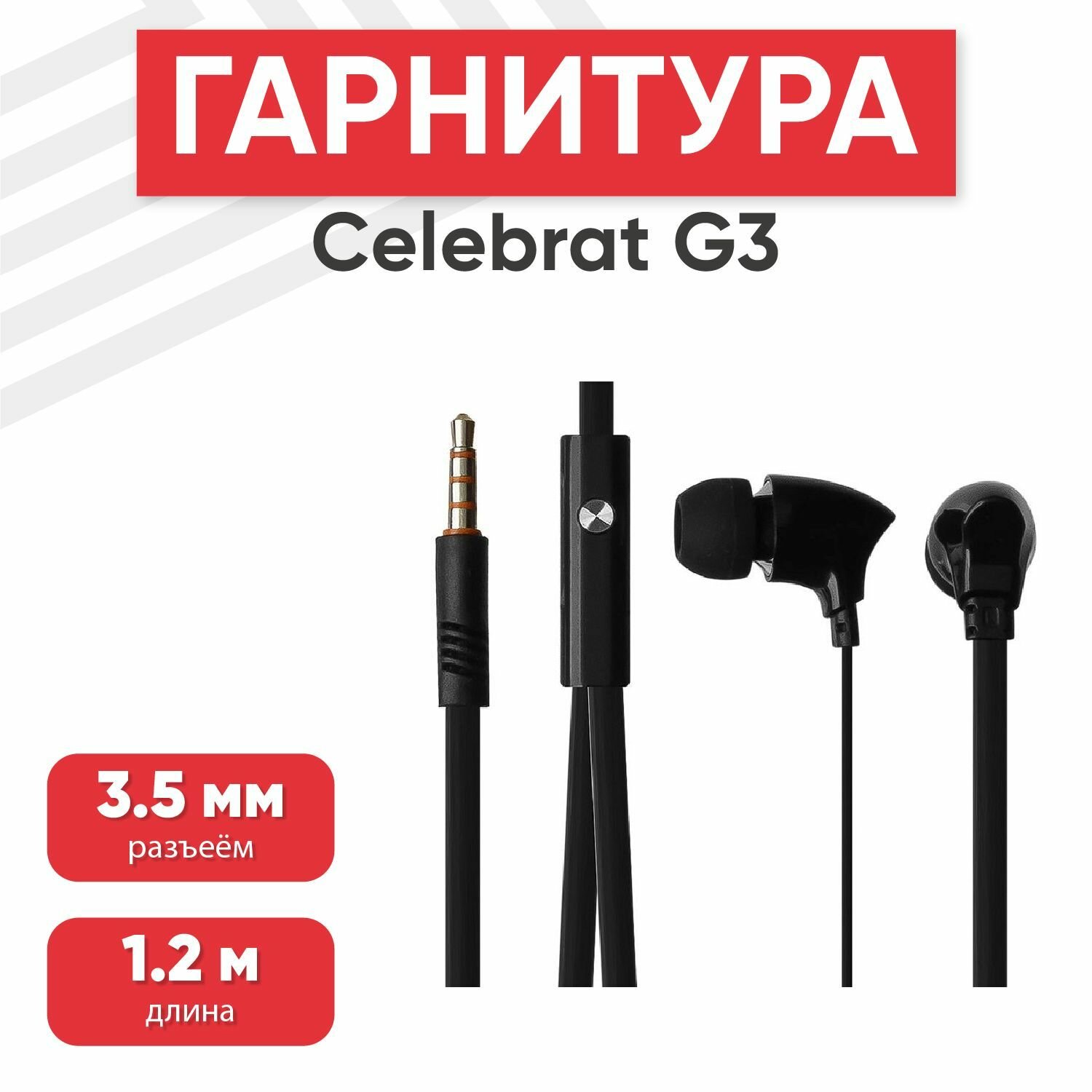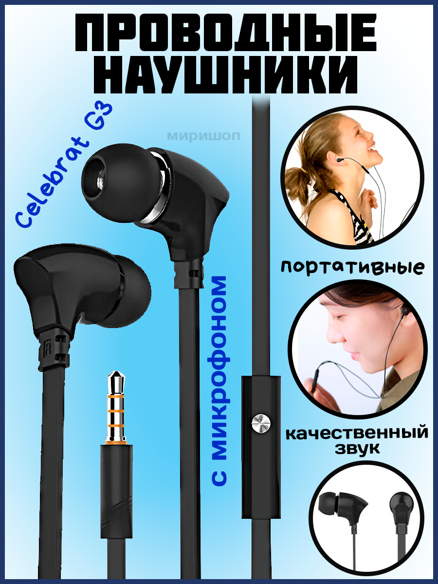 Наушники проводные с микрофоном Celebrat G3, MiniJack 3.5мм, 1.2 метра, черные