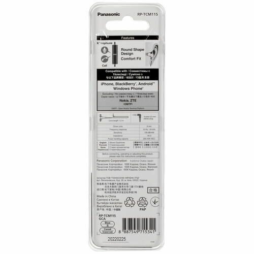 Купить Panasonic Наушники RP-TCM115GCA Наушники-вкладыши