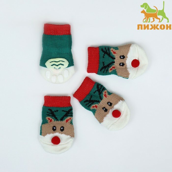 Купить Носки нескользящие "Олени", размер L (3,5/5 * 9 см), набор 4 шт