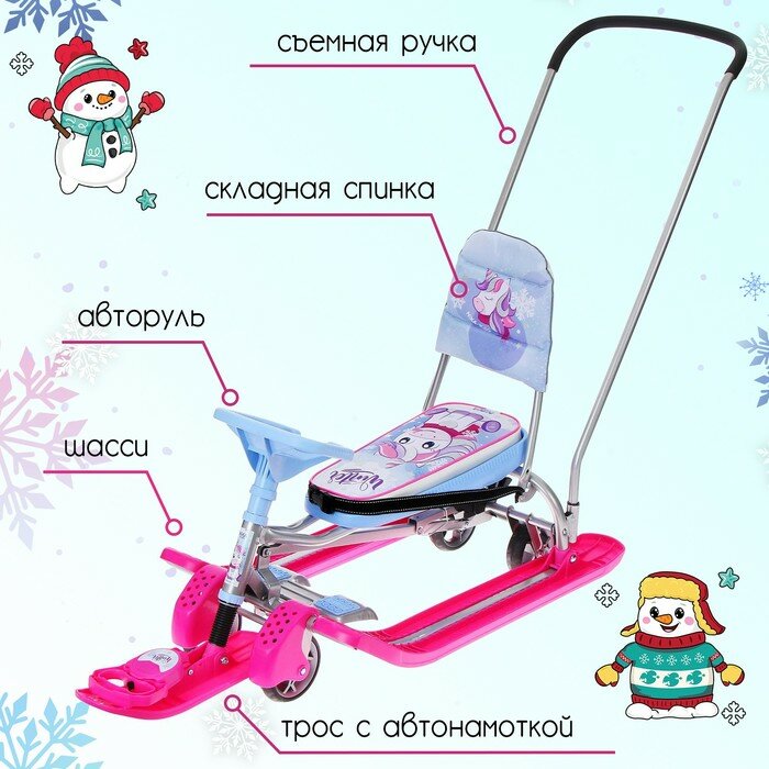 Купить Nika Kids Снегокат с колёсами «Тимка спорт 6 Единорог», ТС6-М/ЕР, с родительской ручкой, со спинкой и ремнём безопасности