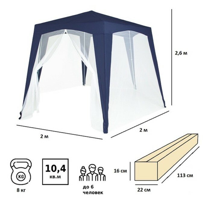 Тент садовый GREEN GLADEс москитной сеткой 10.4 кв.м синий 10061