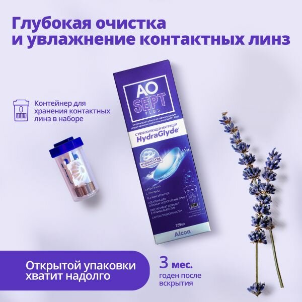 Раствор Alcon AOsept Plus HydraGlyde, с контейнером, 360 мл, 1 шт.