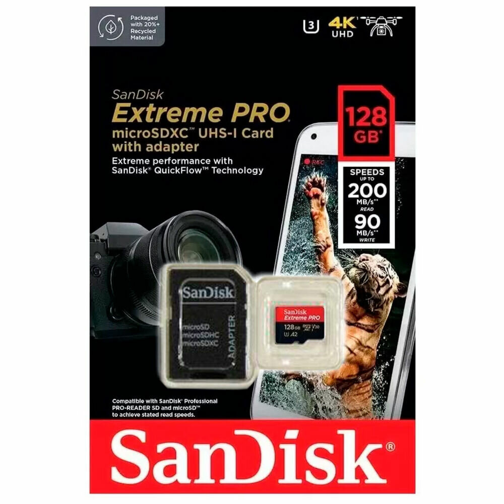 Купить Карта памяти SanDisk Extreme Pro microSDXC 128GB UHS-I U3 V30, A2, R/W 200/90 МБ/с с адаптером