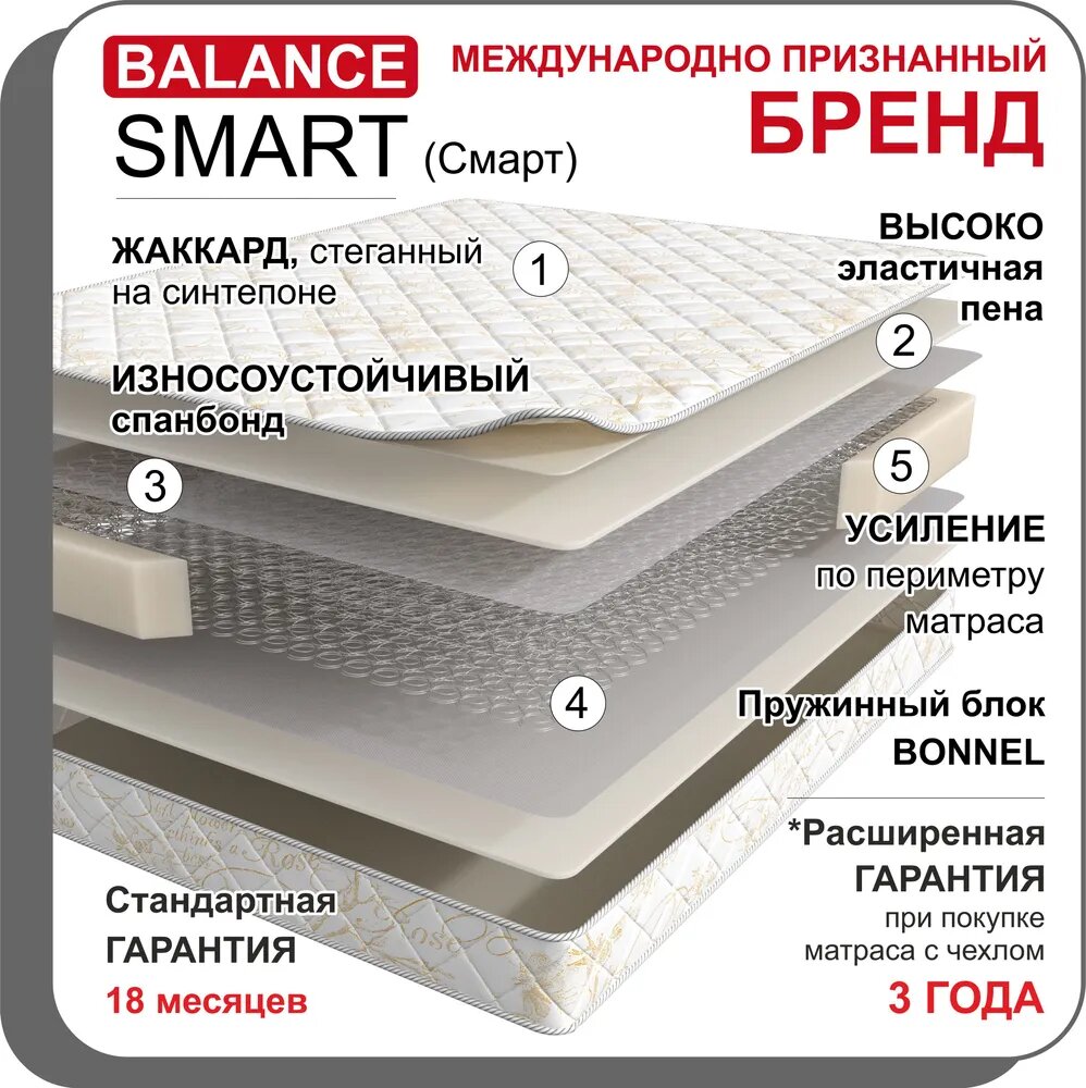 СохранитьМатрас пружинный гипоаллергенный Balance Smart с блоком зависимых пружин 160х200 см интересное: