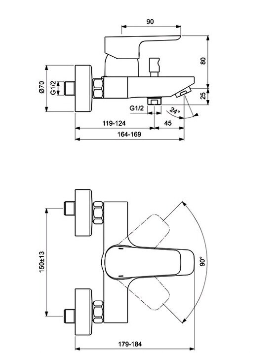 Ideal Standard CERAPLAN 3 Смеситель для ванны/душа B0718AA настенный, однозахватный, цвет: хром