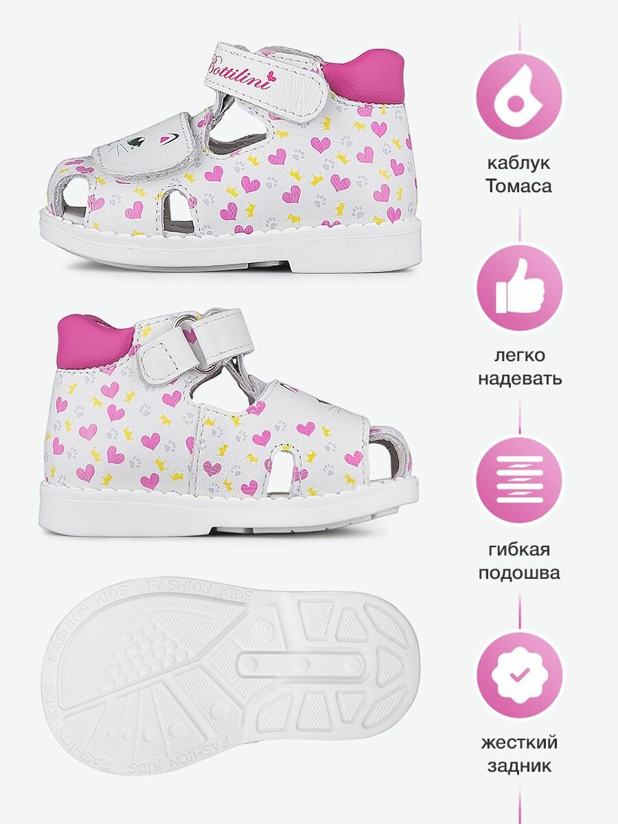 Сандалии BOTTILINI, размер 21 / 13 см, белый, розовый
