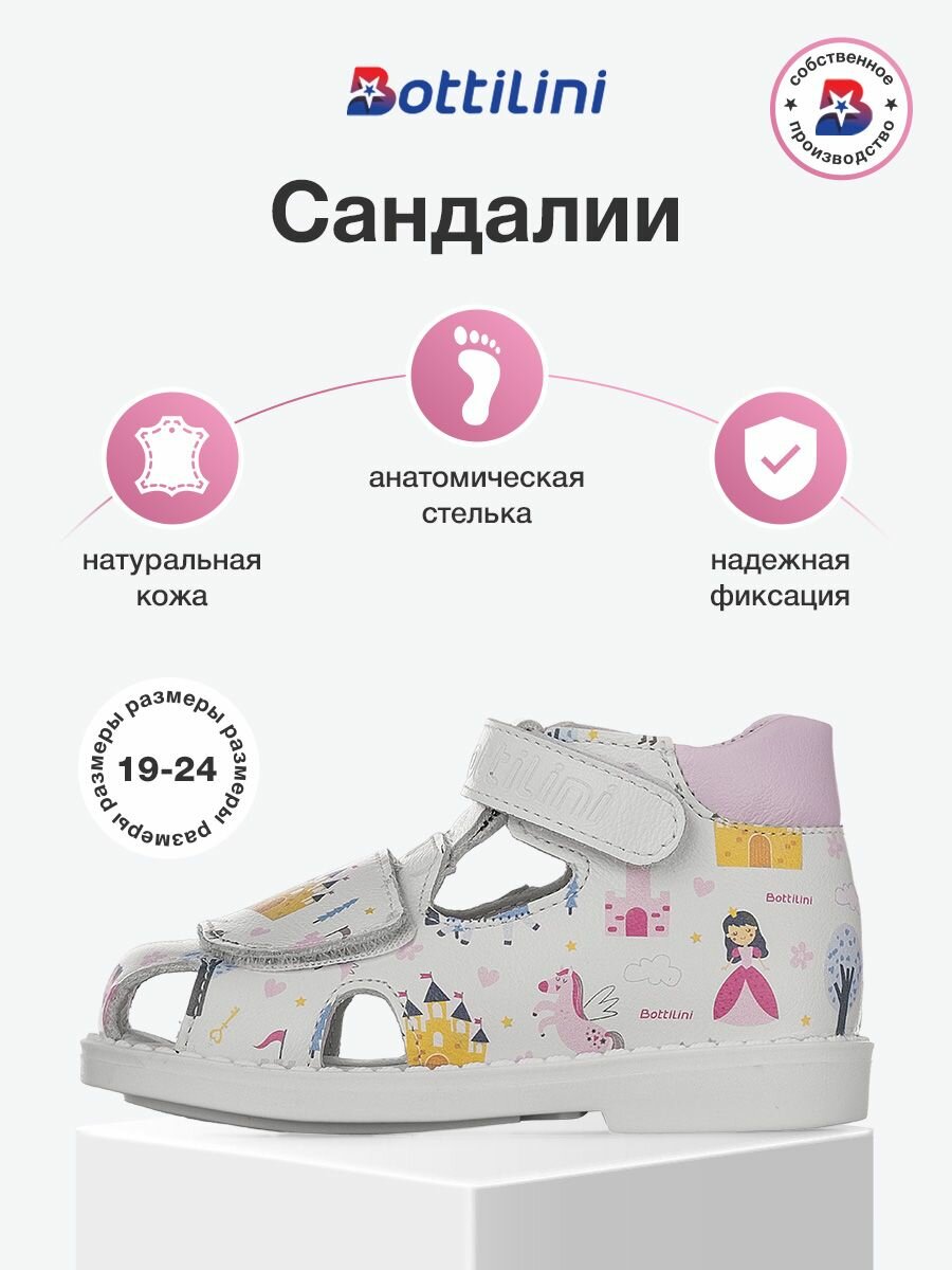 Сандалии BOTTILINI, размер 19 / 11,5 см, белый, розовый
