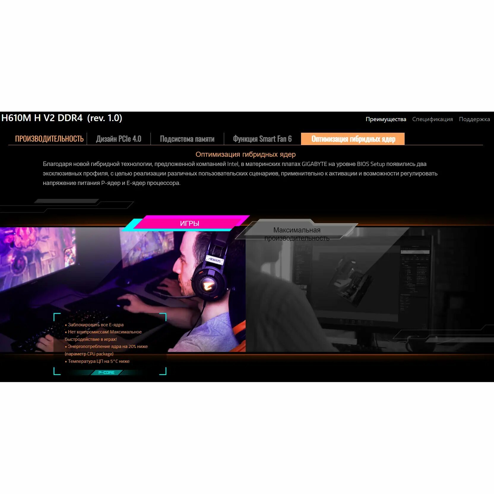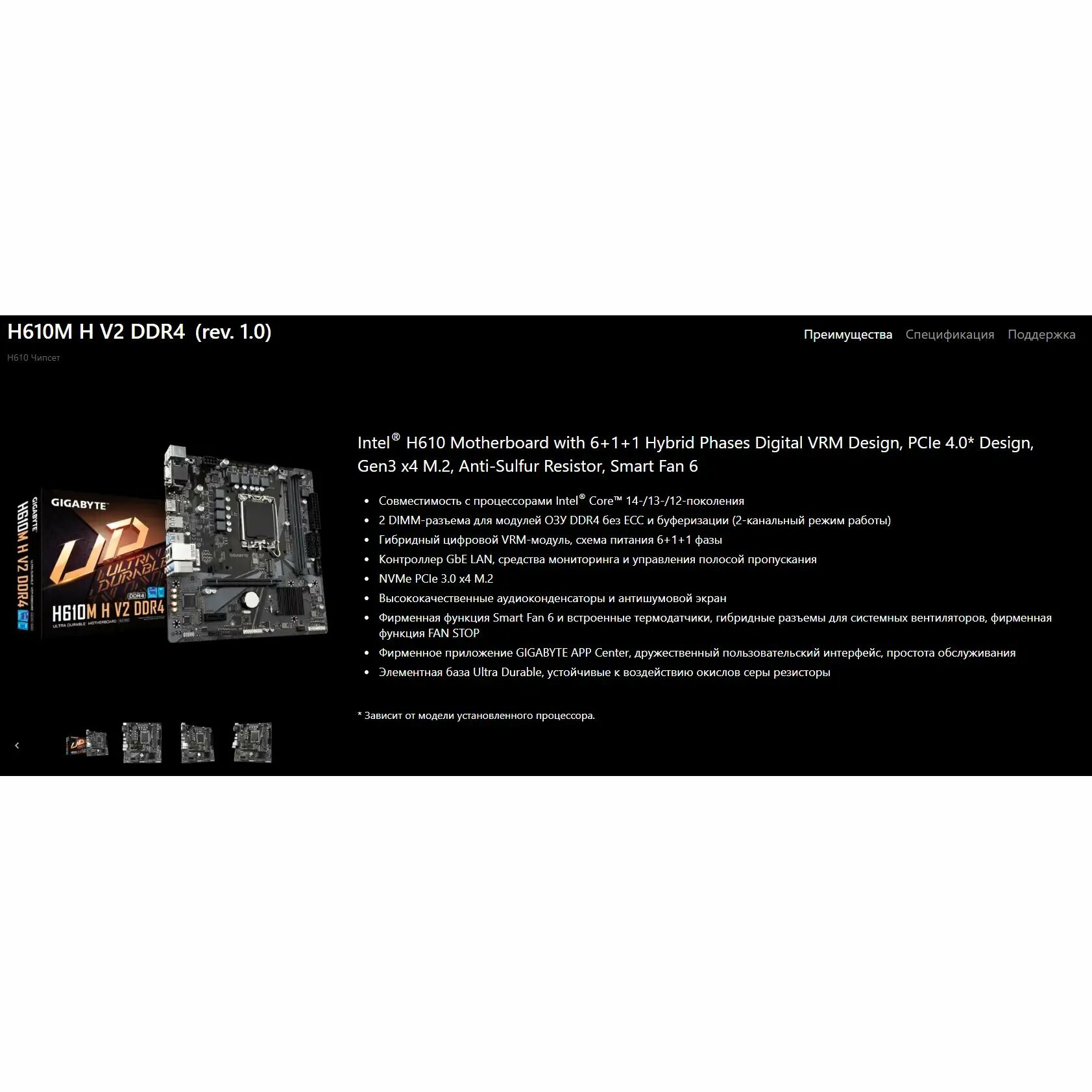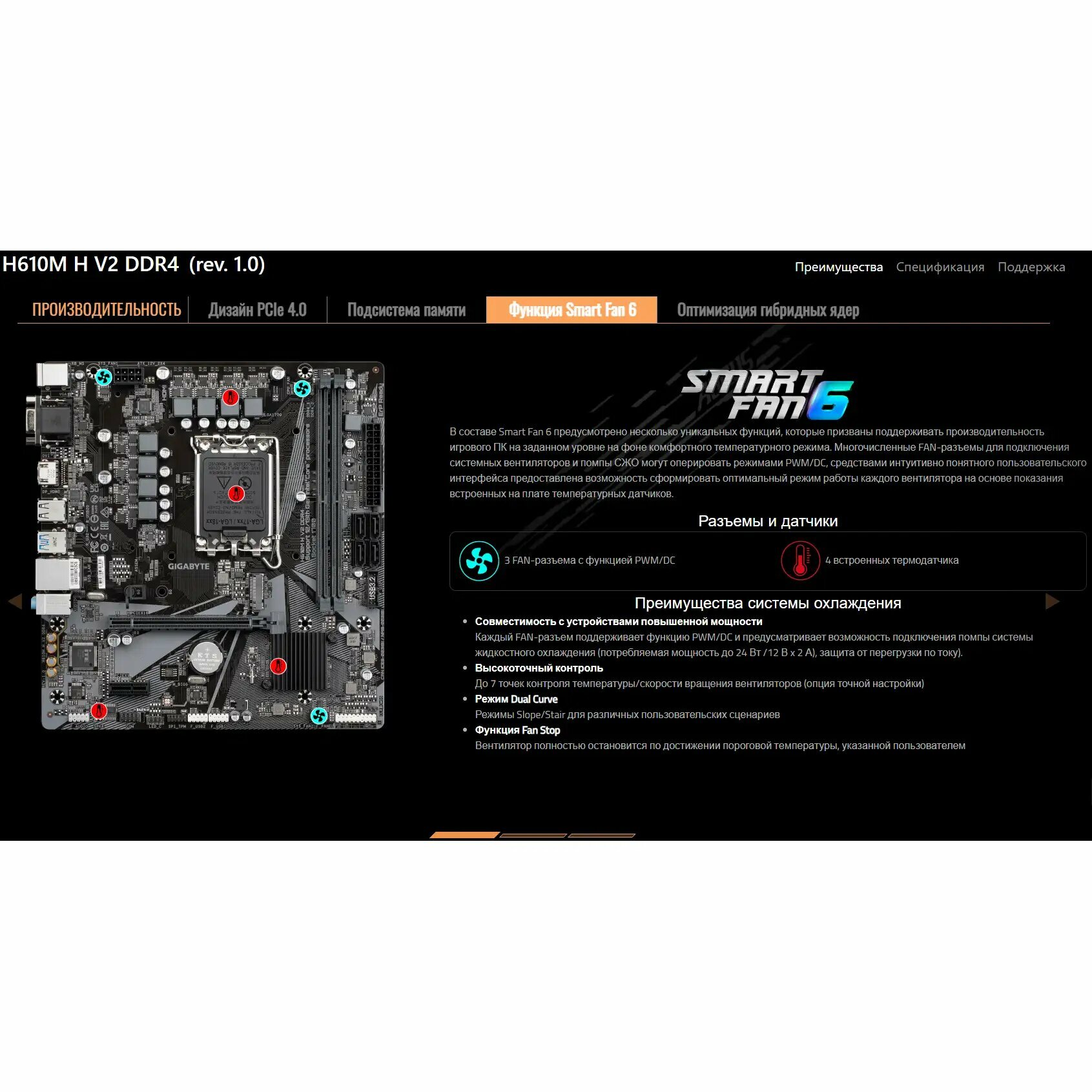 Материнская плата GIGABYTE H610M H V2, LGA1700, 2 x DDR4, HDMI, VGA, PCI-E 3.0 и 4.0, разъём M.2, microATX, Retail интересное: