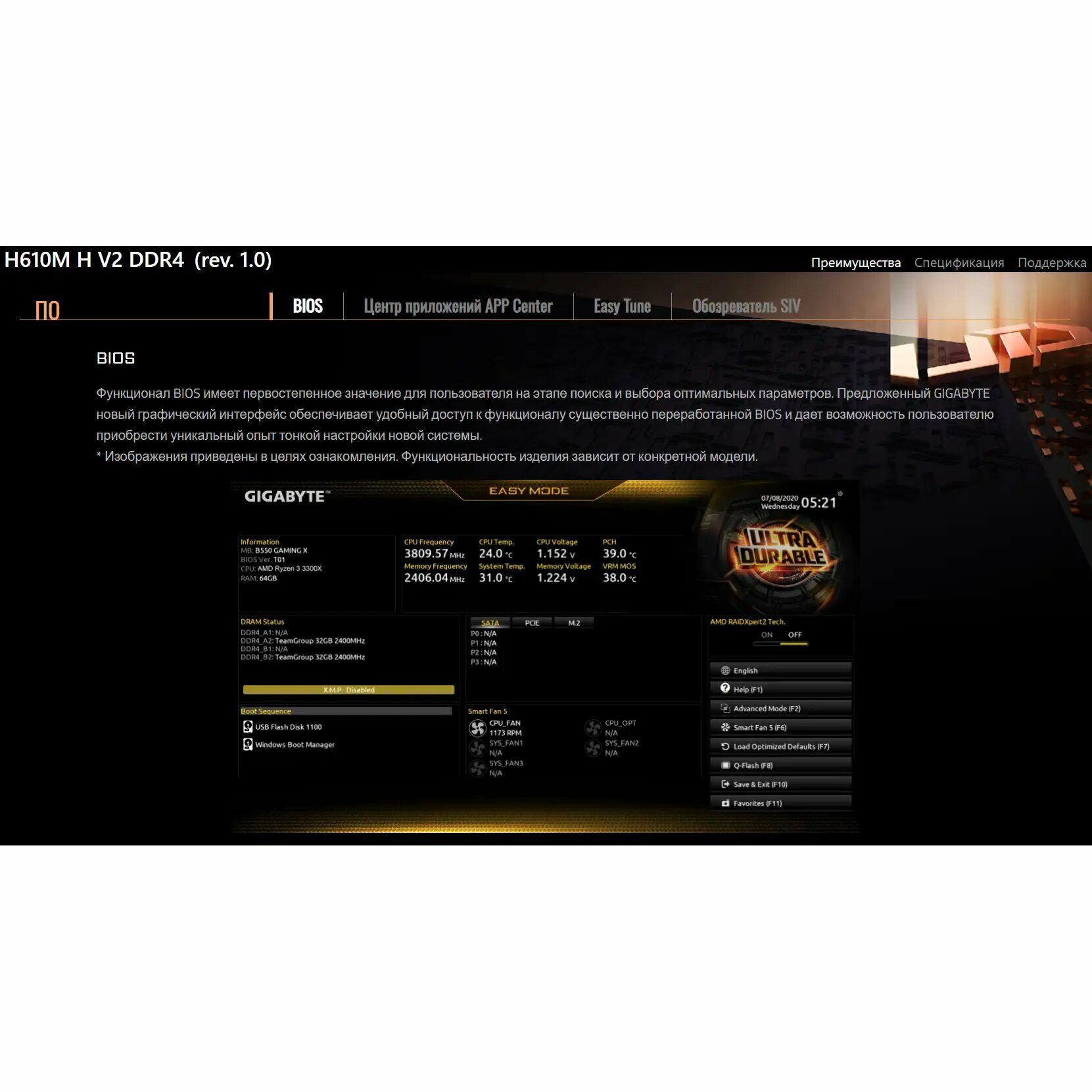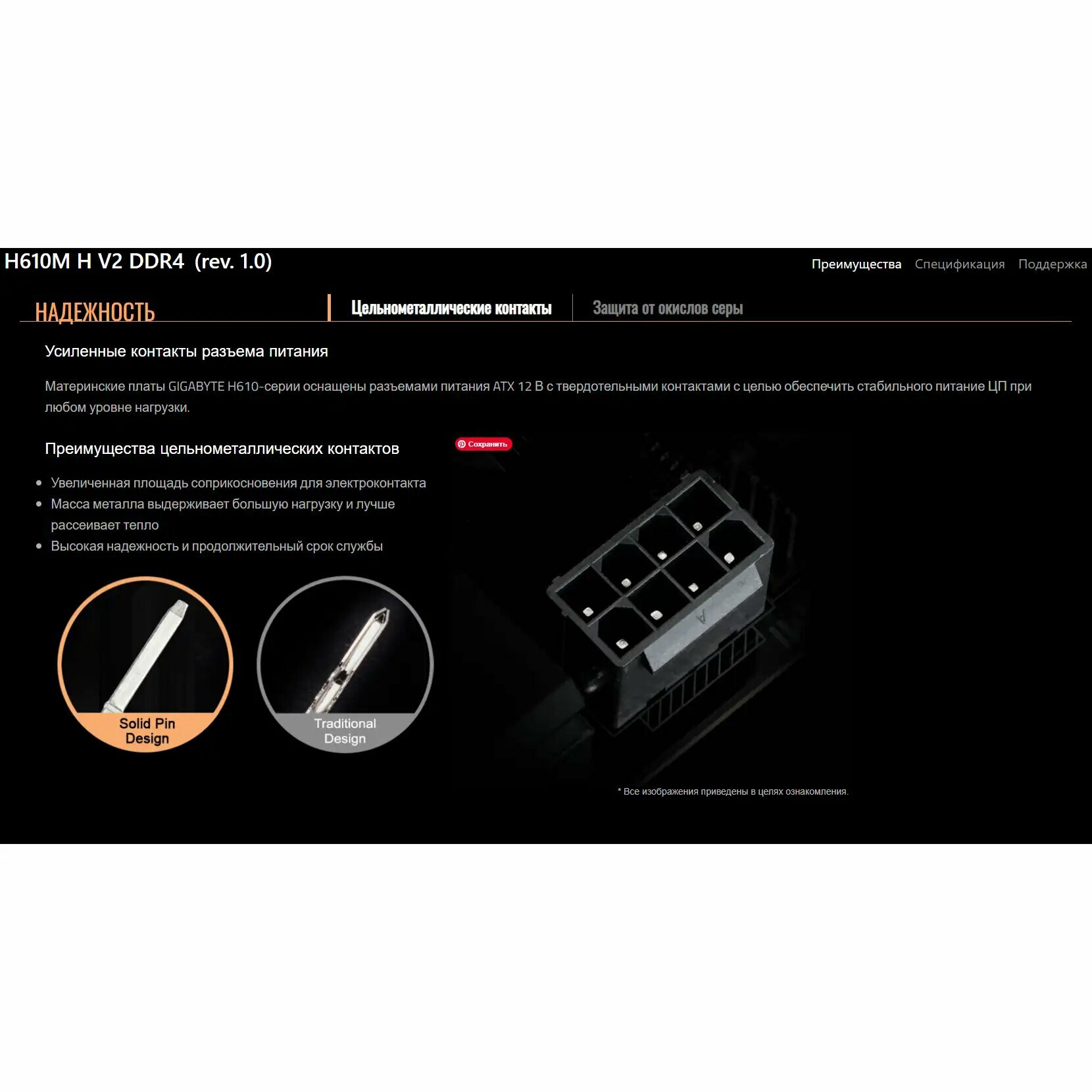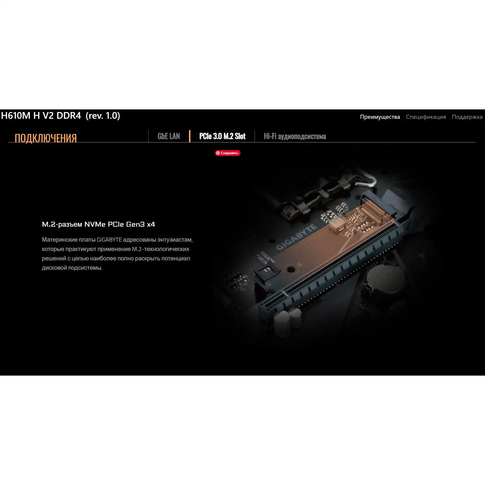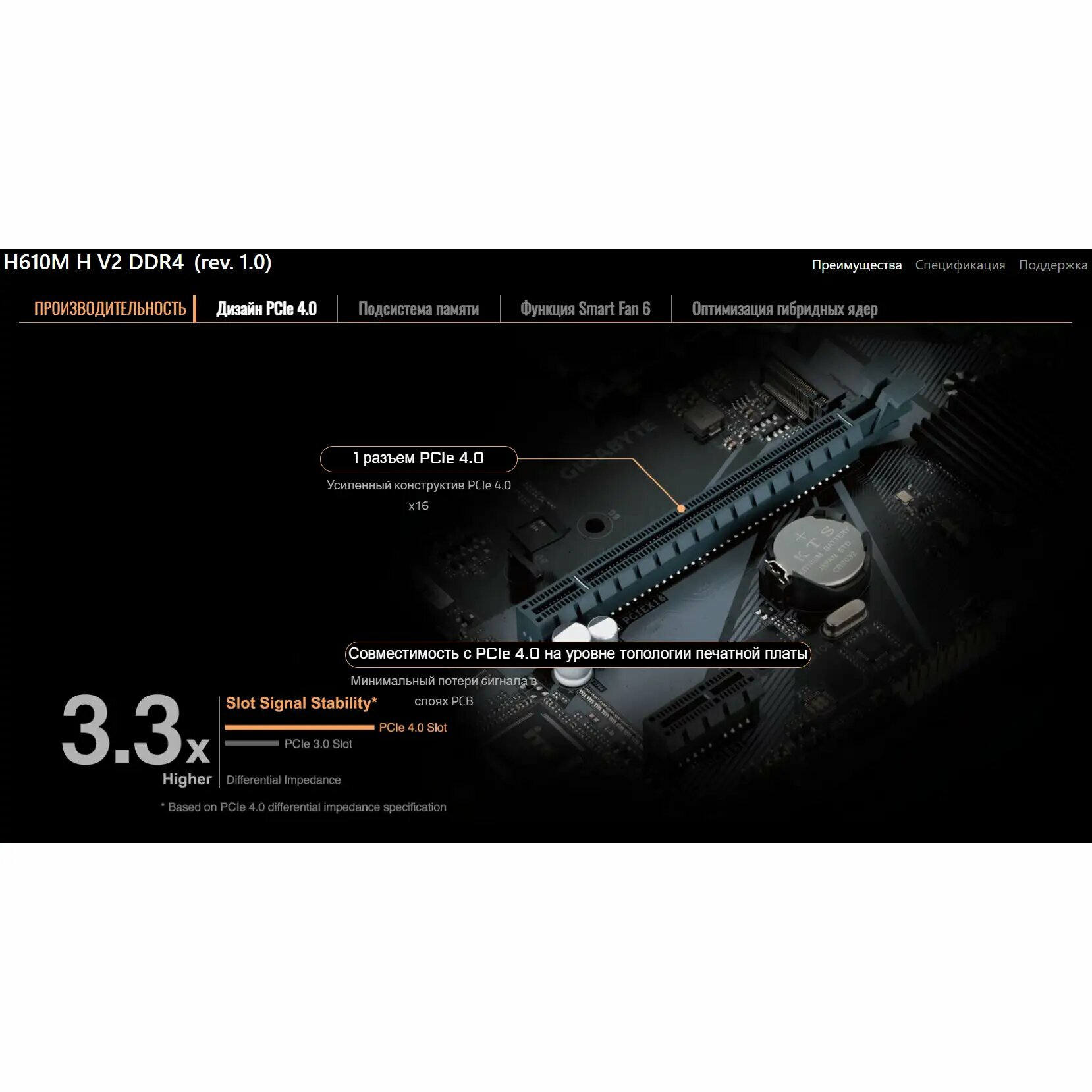 Материнская плата GIGABYTE H610M H V2, LGA1700, 2 x DDR4, HDMI, VGA, PCI-E 3.0 и 4.0, разъём M.2, microATX, Retail интересное: