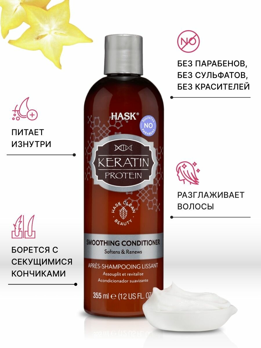 Hask Кондиционер для придания гладкости волосам с протеином Кератина Keratin Protein Smoothing Conditioner, с протеином кератина 355мл