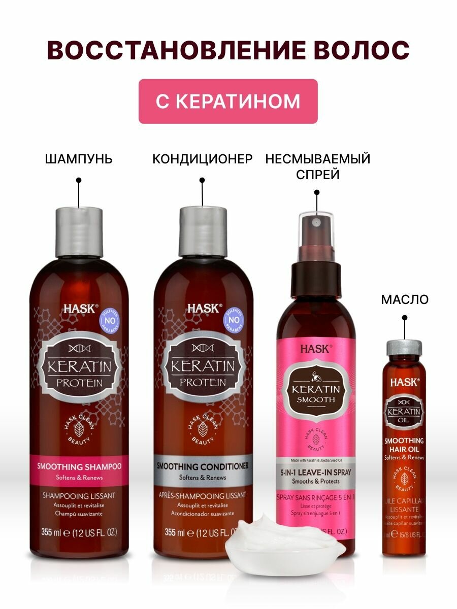 Кондиционер для придания гладкости волосам Hask с протеином кератина, 355 мл.