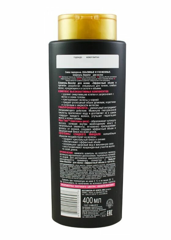 Белита Сила Гиалурона Объёмные и Ухоженные Шампунь-Booster для волос Эффектный объём и густота 400мл