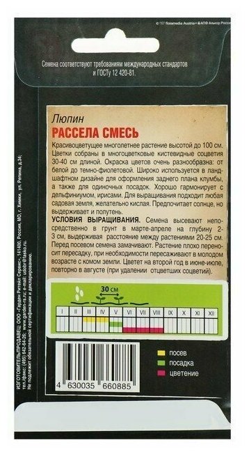 Ниже Вы можете прочитать отзывы на Семена цветов для посева "Тимирязевский питомник" Люпин "Рассела", смесь, 0,6 г., ознакомится с подробными характеристиками, посмотреть интересные обзоры и фотографии на Семена цветов для посева "Тимирязевский питомник" Люпин "Рассела", смесь, 0,6 г..