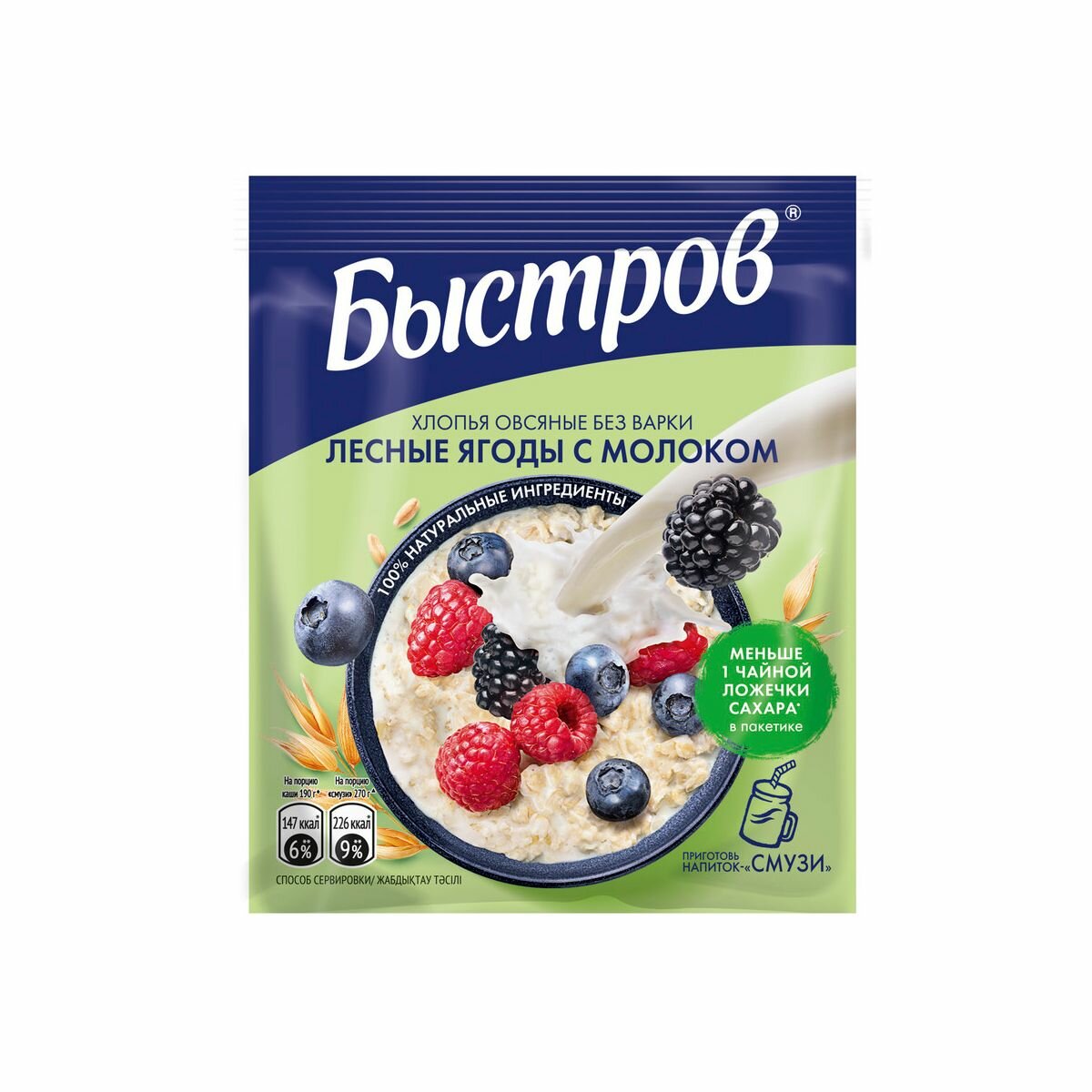 Быстров Каша Овсяная с молоком, Ассорти клубника, малина, лесные ягоды, без варки, 240 г