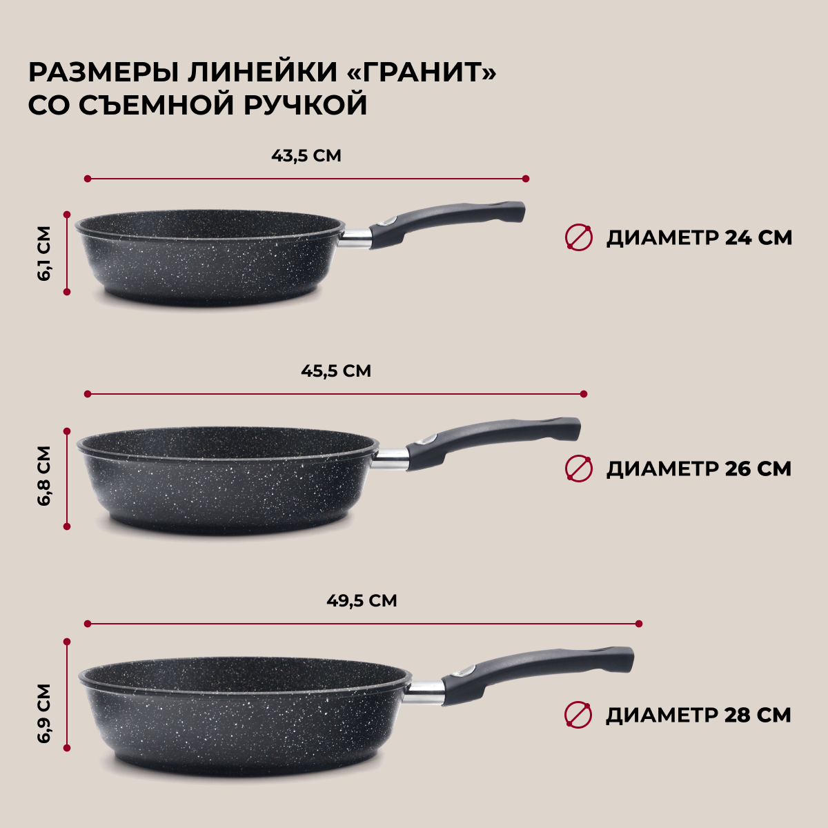 Сковорода со съемной ручкой VICTORIA "Гранит", 24 см.
