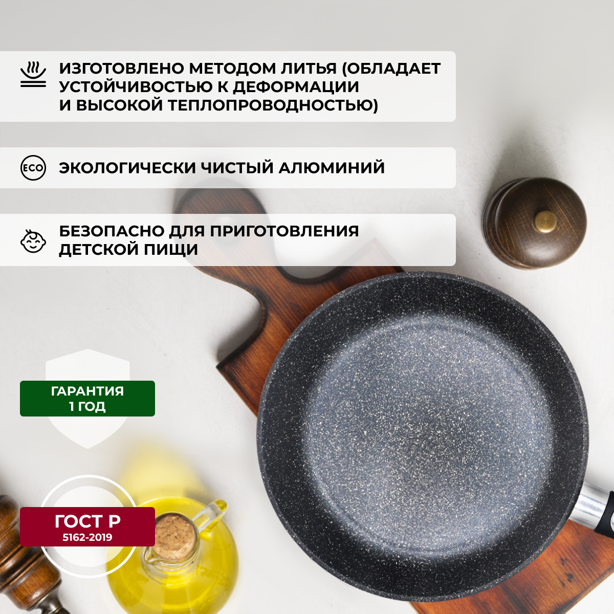 Сковорода Виктория АЛА 260 со съемной ручкой "гранит", черн. с бел.крапинками G0326
