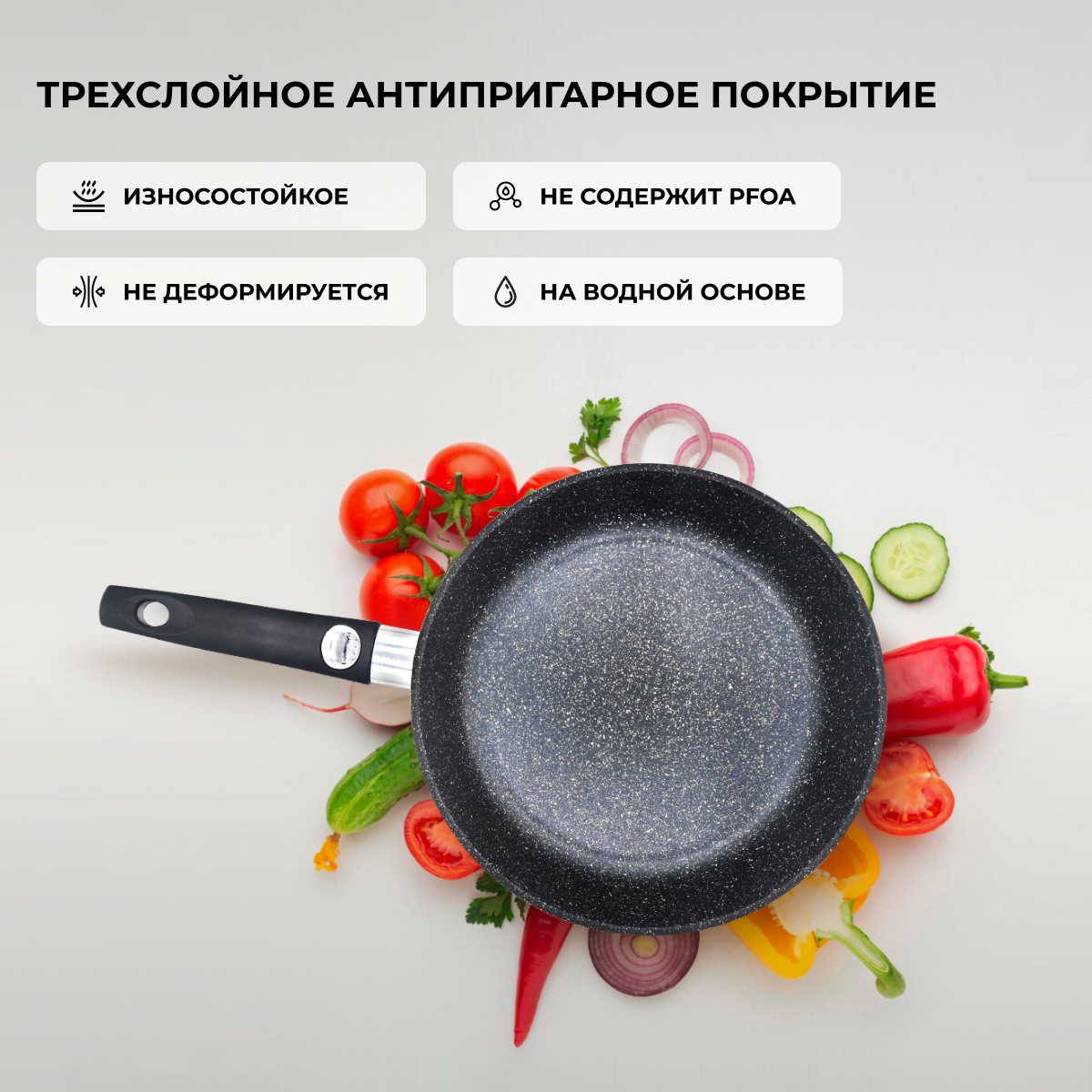 Сковорода Victoria АЛА 240 со съемной ручкой "гранит", черн. с бел.крапинками G0324
