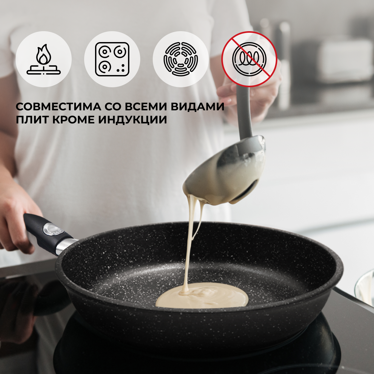 Сковорода Victoria АЛА 280 со съемной ручкой "гранит", черн. с бел.крапинками G0328