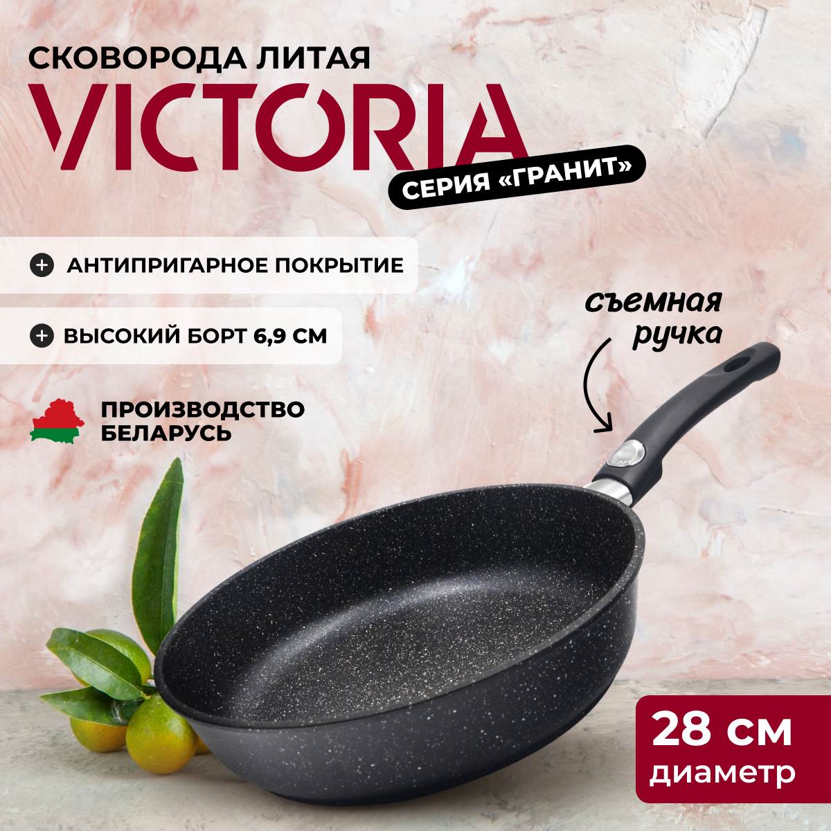 Купить Сковорода со съемной ручкой VICTORIA "Гранит", 28 см, черная