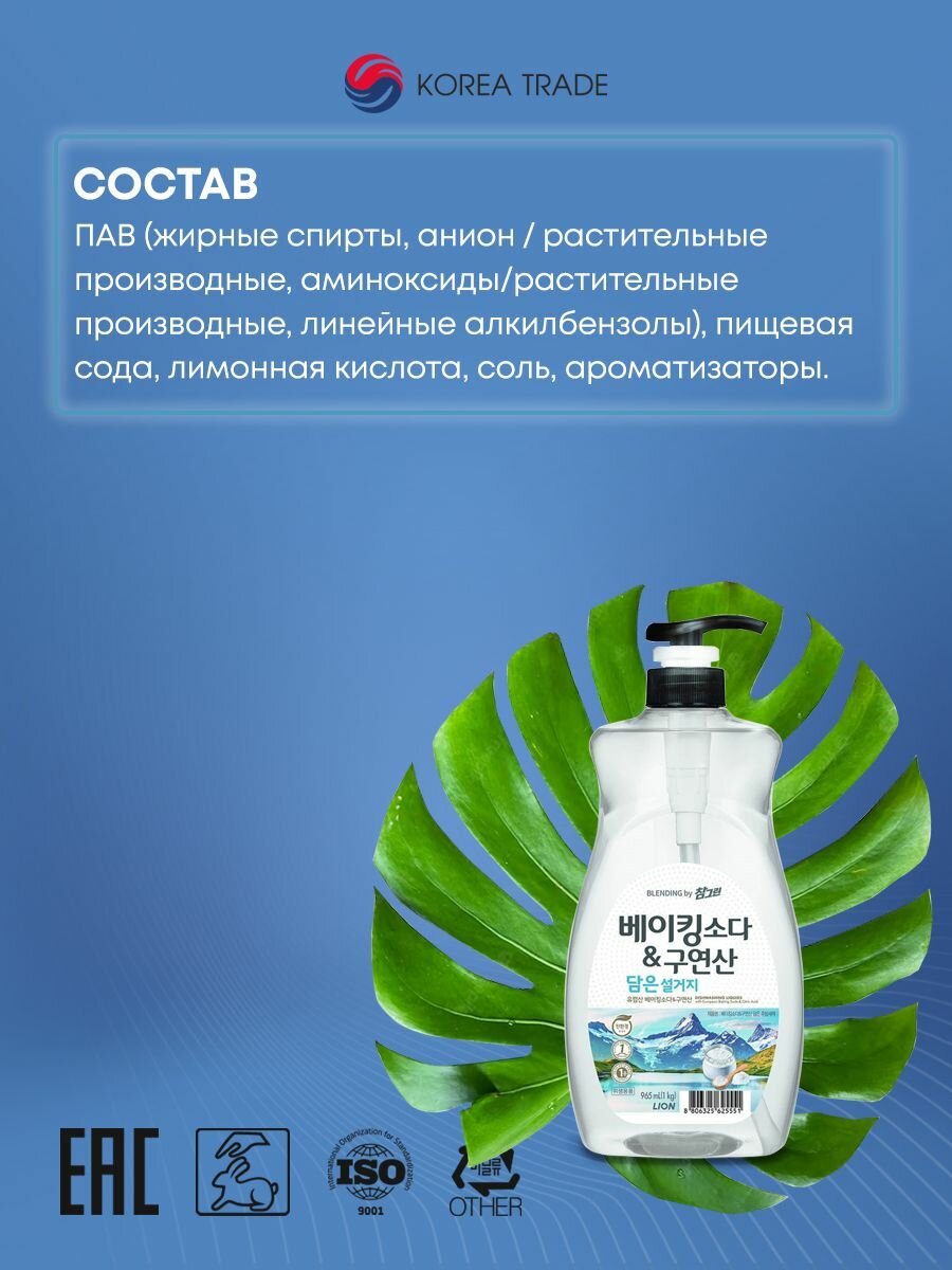 Средство для мытья посуды с содой и лимонной кислотой LION "Chamgreen" 965 мл
