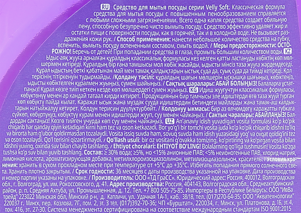 Средство Для Мытья Посуды Velly Бархатная Фиалка 500 Мл. Grass 125383 GraSS арт. 125383