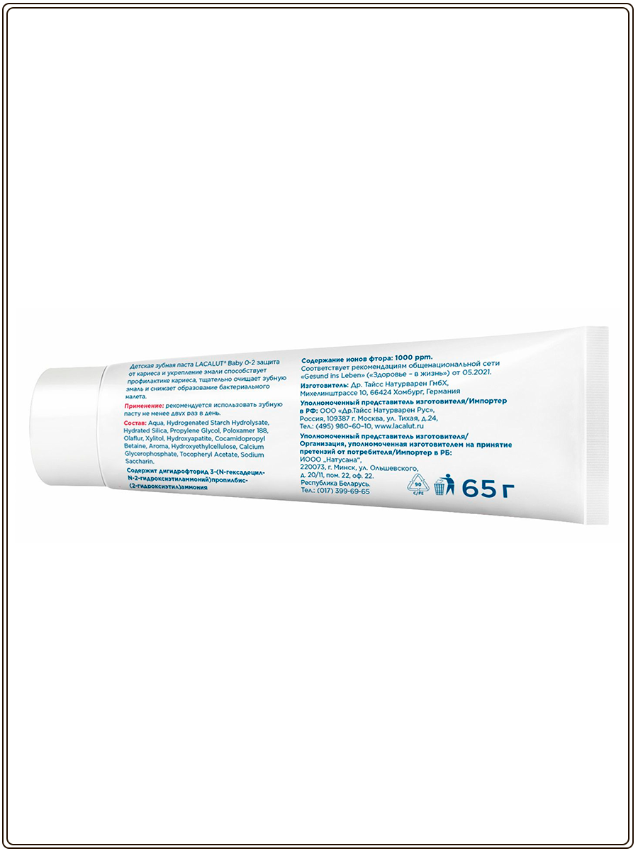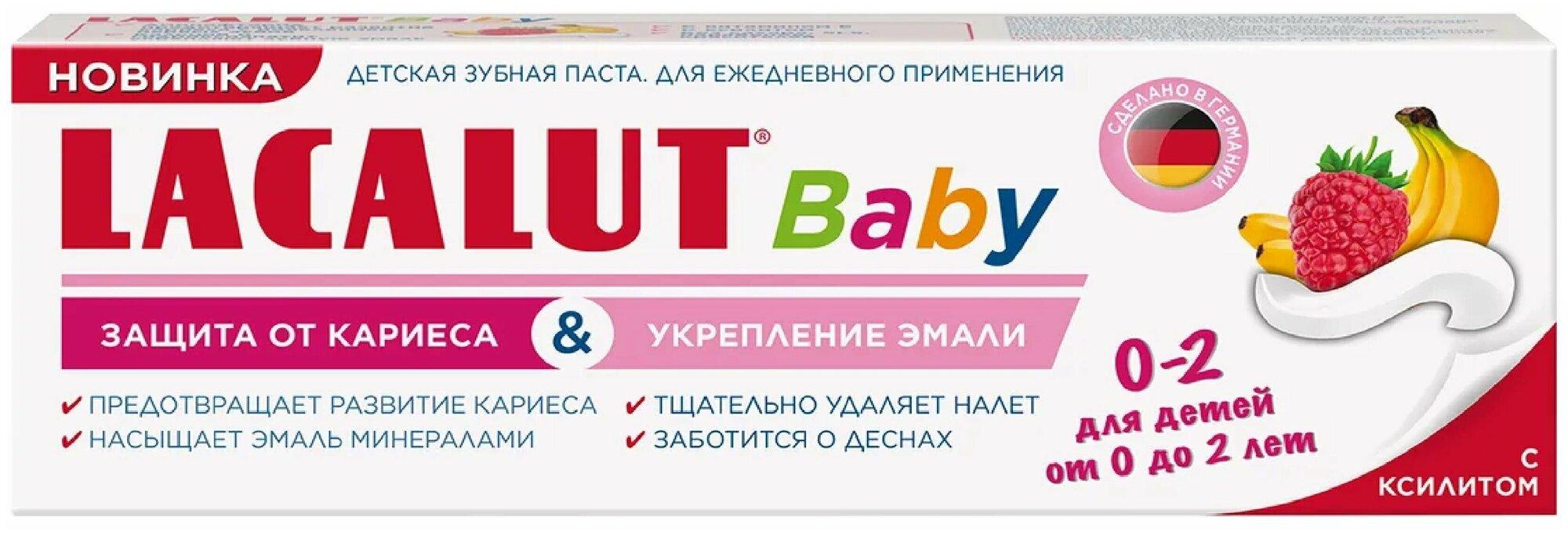 Зубная паста Lacalut Baby от 0 до 2 лет детская защита от кариеса и укрепление эмали, 65 г
