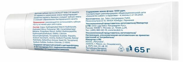 СохранитьЗубная паста Kids 2-6 защита от кариеса и укрепление эмали детская 65г - Lakalut [4016369663615] интересное: