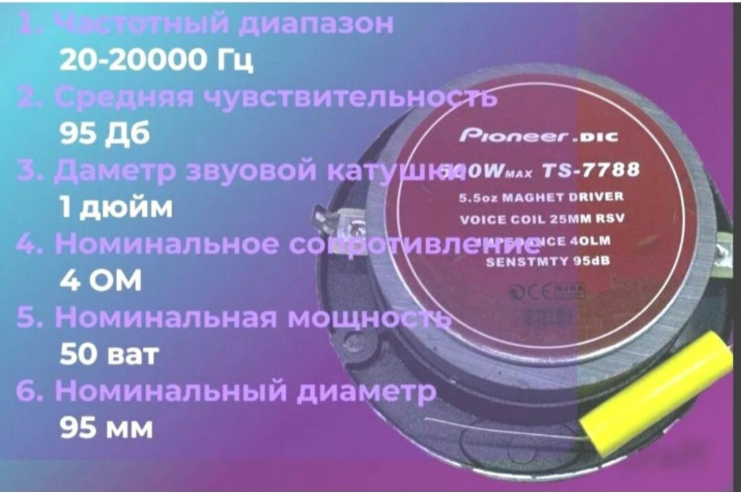 Колонки автомобильные твитеры PIONEER-dic TS7788, 500w интересное: