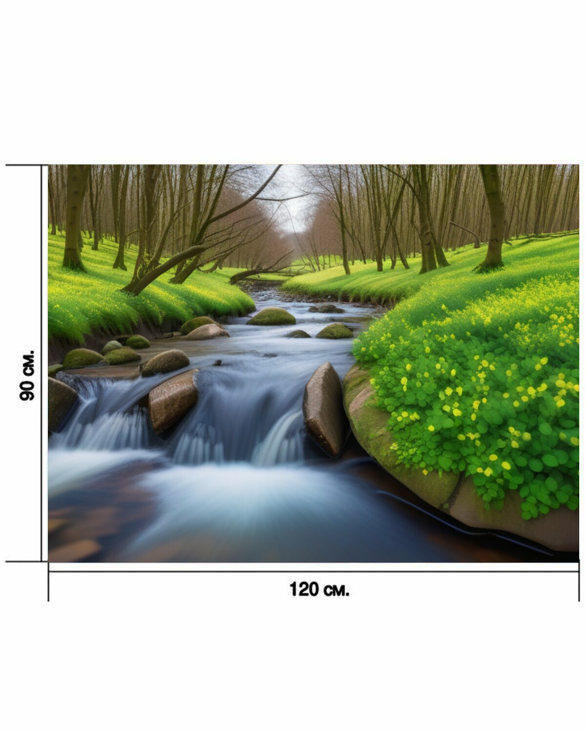 Картина на холсте "Весенний пейзаж с ручьями , " с подвесами 120х90 см. для интерьера на стену интересное: