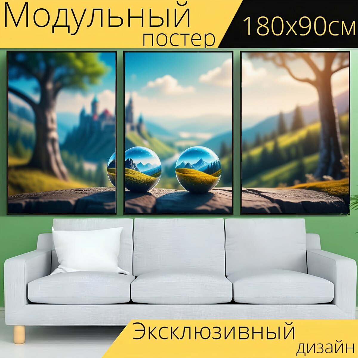 Купить Модульный постер "Пейзаж с двумя берегами , " 180 x 90 см. для интерьера на стену